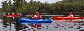 family on kayaks
